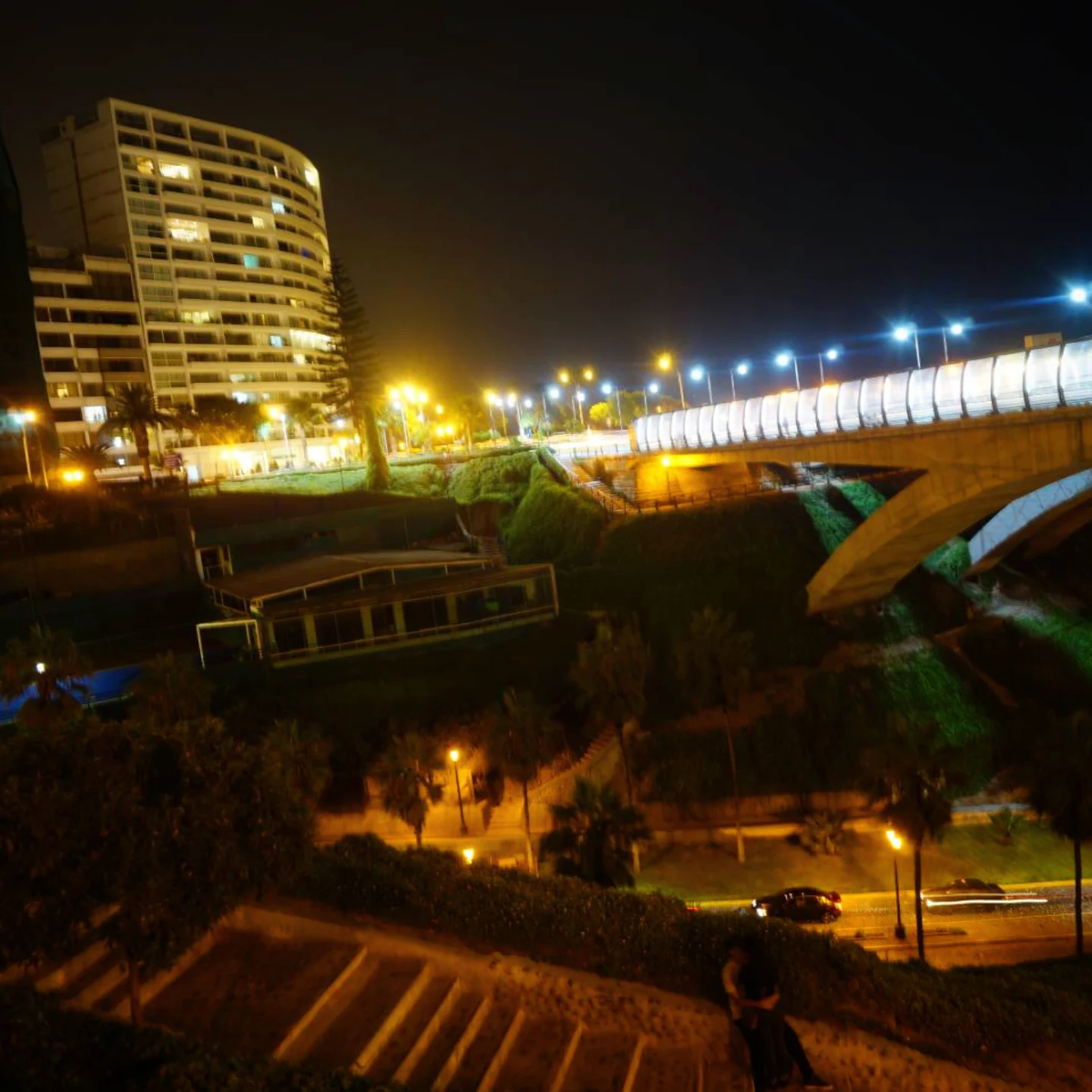 Looking flowers #peru, y la parejita arrimandose #lima #miraflores #night #citylights